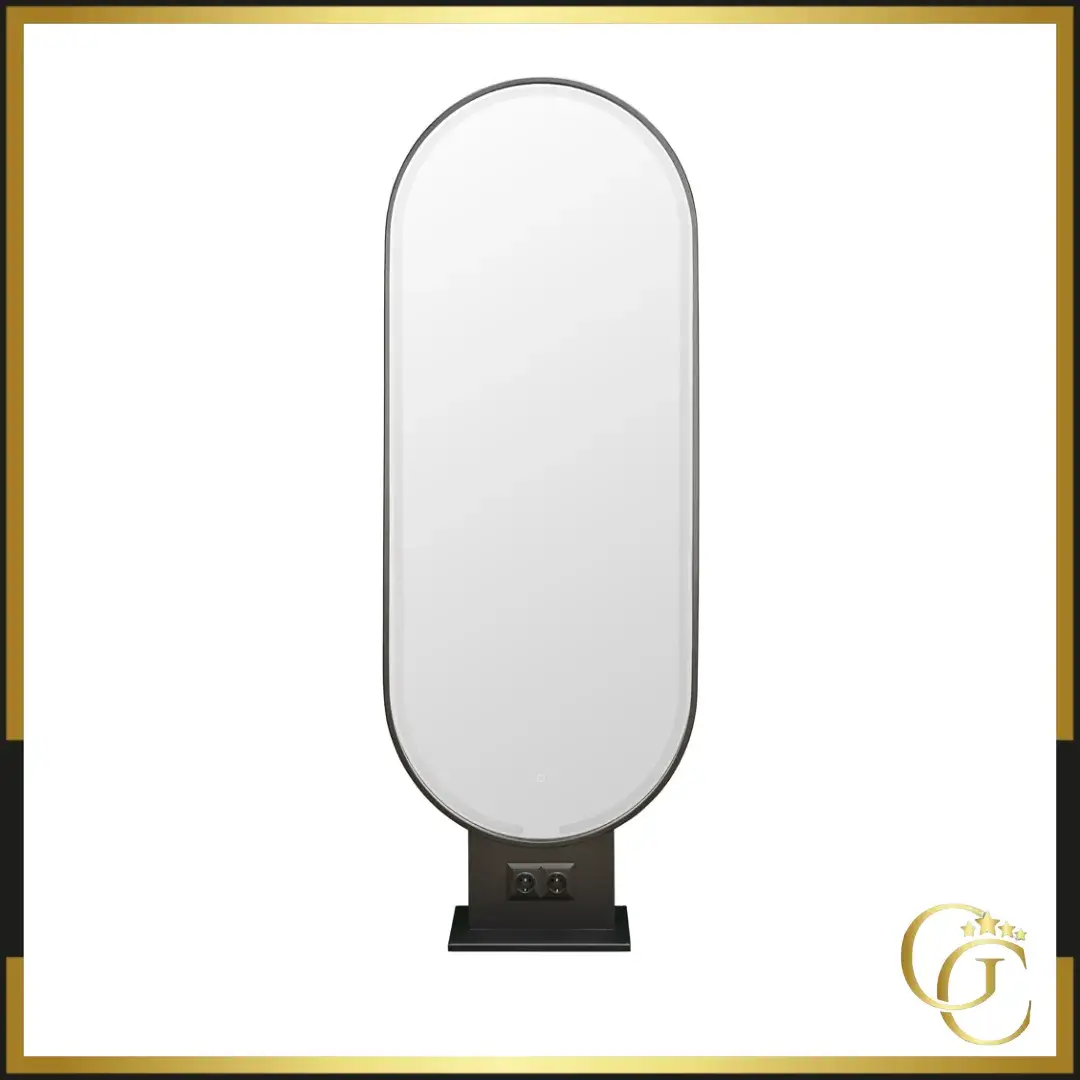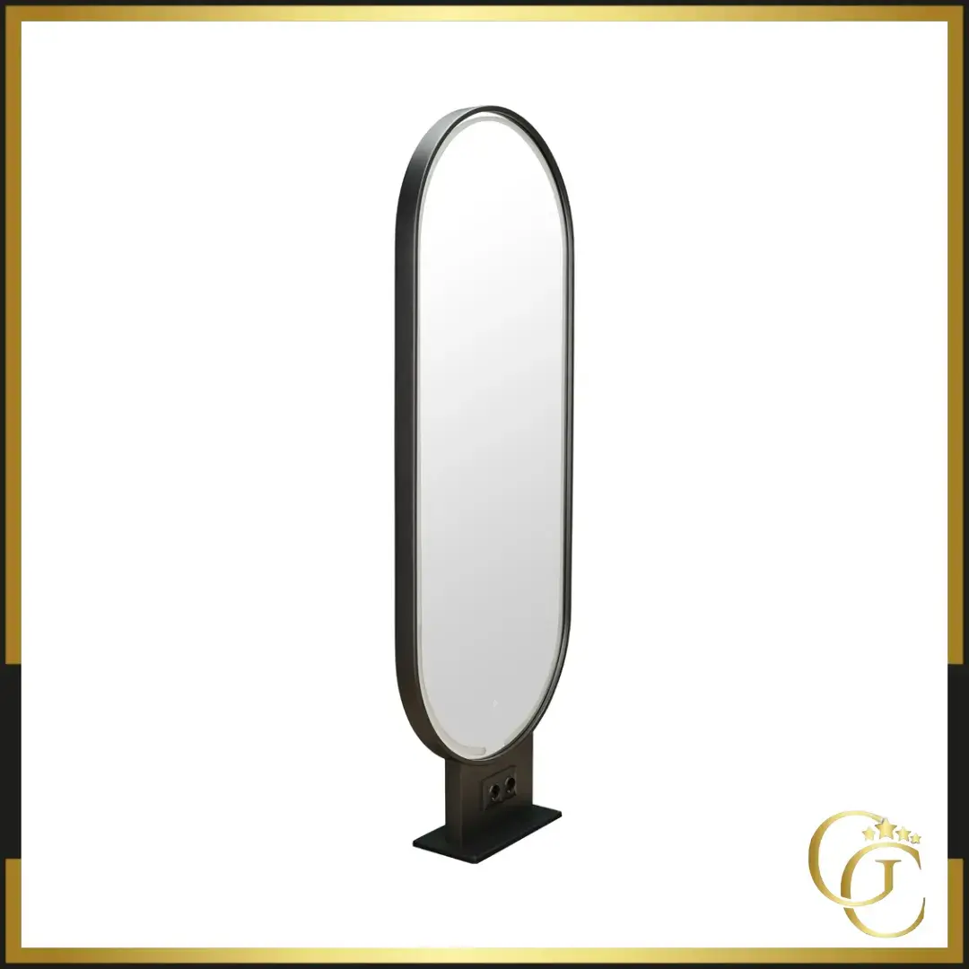 The LEO LED hairdressing mirror fits perfectly into professional spaces. Its metal frame, available in black or gold, adds a touch of timeless elegance.
