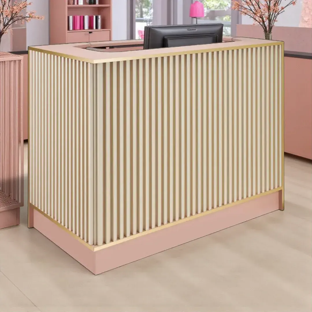 - Un meuble d’accueil pour salon de coiffure élégant et personnalisable