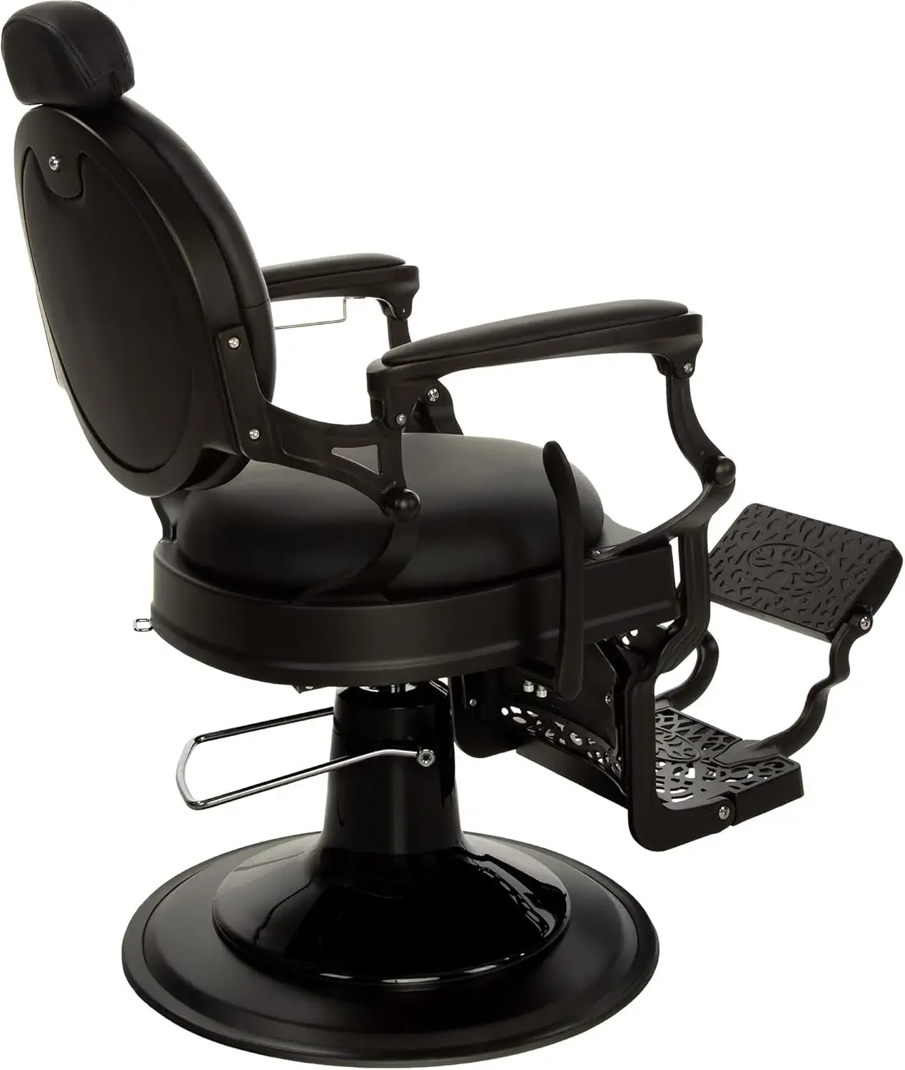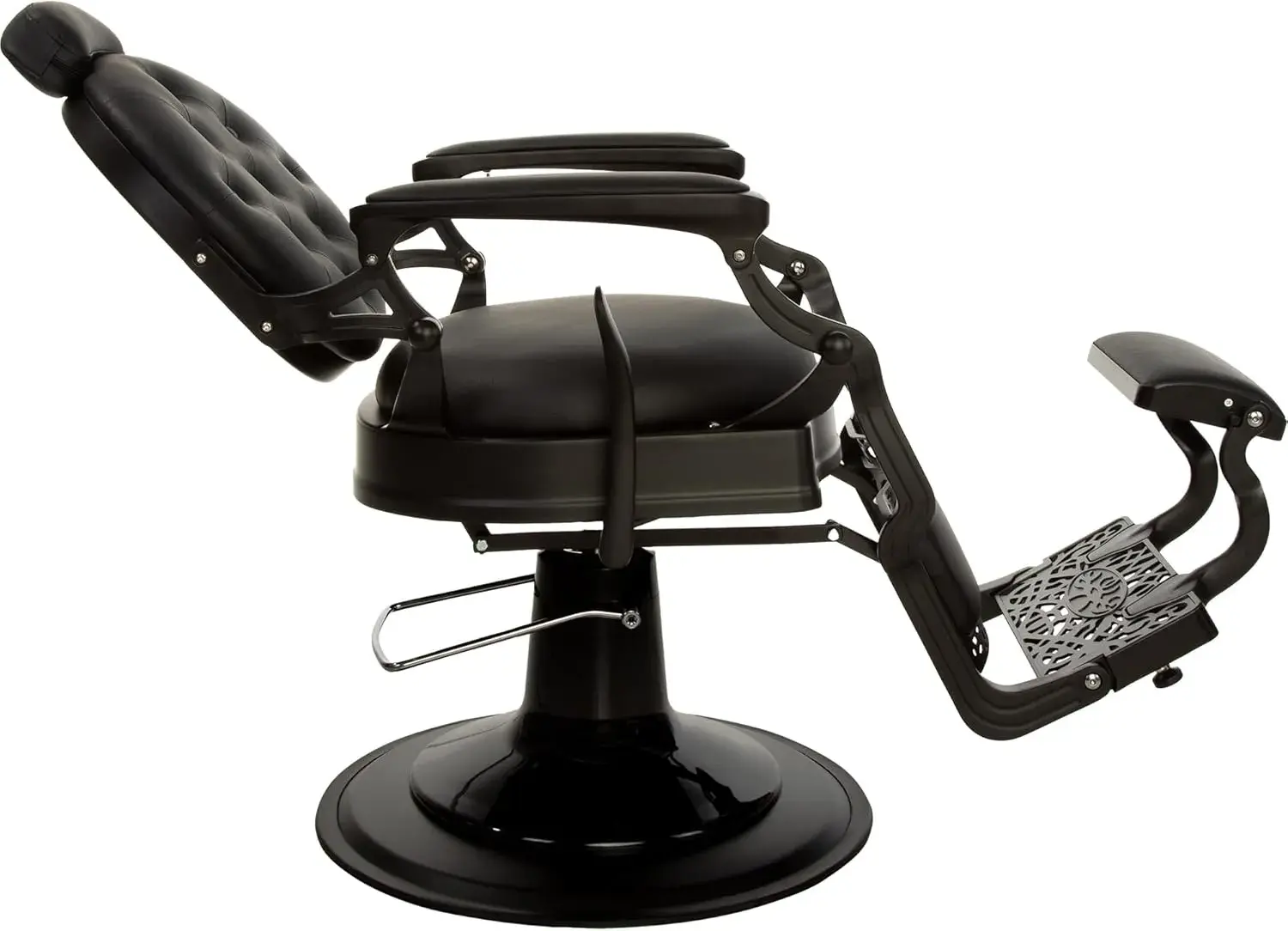 Le Fauteuil de barbier TOMMY Full Black combine style vintage et confort professionnel. Inspiré des années 1920, il transforme l’ambiance de votre salon. Sa structure en acier massif garantit solidité et longévité. Le revêtement en skaï noir est élégant et facile à nettoyer.