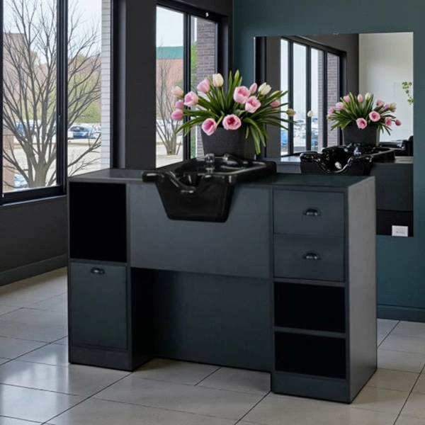 Le bac peut recevoir une vasque en céramique blanche ou noire. Par conséquent, vous adaptez le poste à l’identité de votre salon. L’ensemble paraît plus cohérent, et votre espace gagne en standing.