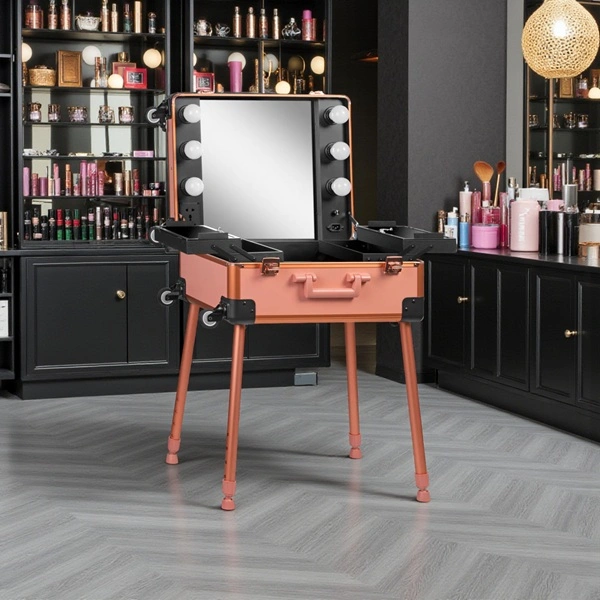 Disponible en rose, argent et noir, cette Valise de maquillage Viola offre un style raffiné. Le miroir intégré avec lumières LED garantit une visibilité parfaite pour les maquillages détaillés, même dans des conditions de faible luminosité.